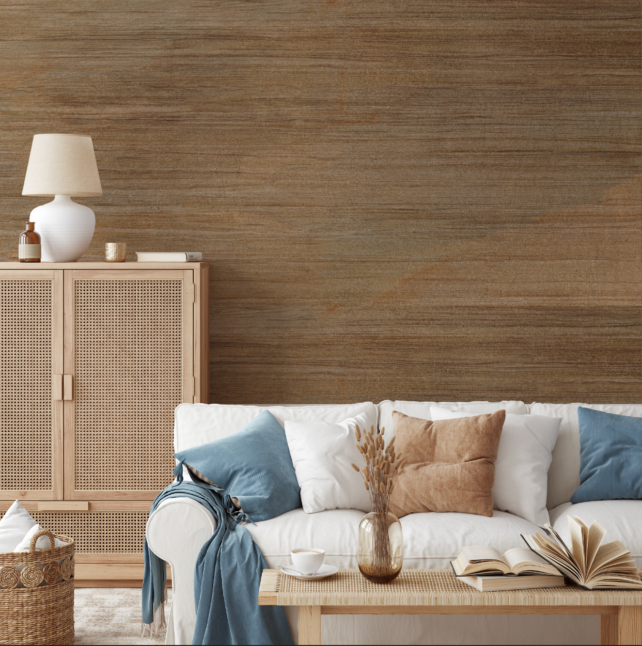 Intricate layers and various brown tones give this warm stone texture visual interest and bring a natural movement and energy. Use “Crete” to add a tranquil and grounded feel to a space.
